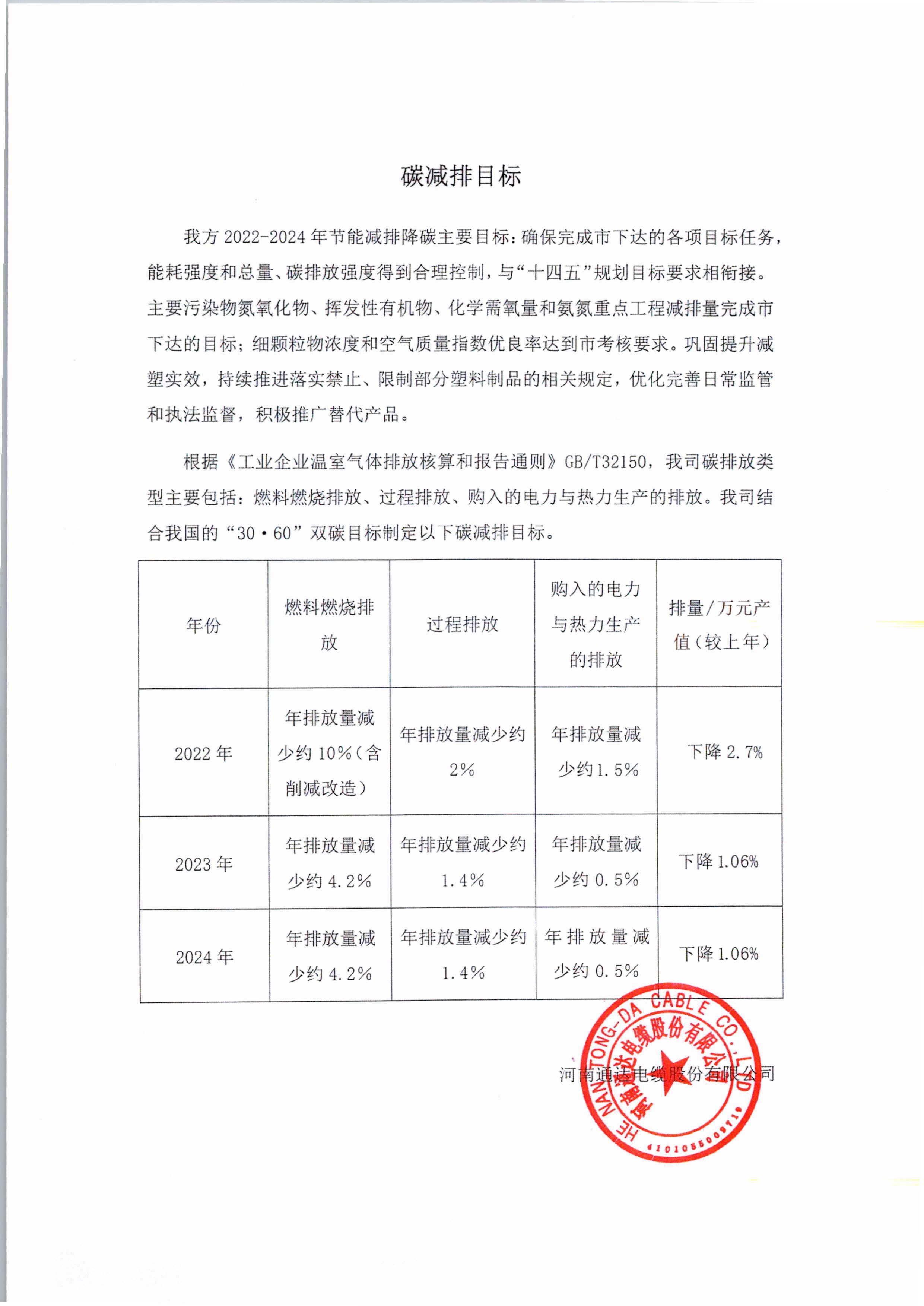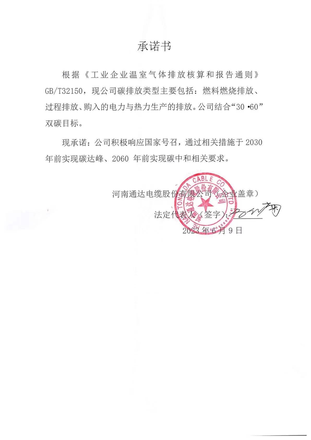 通達(dá)股份碳減排目標(biāo)和承諾書