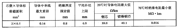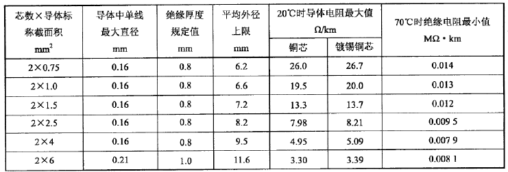 表 2 RVS型300/300V銅芯聚氯乙烯絕緣絞型連接用軟電纜