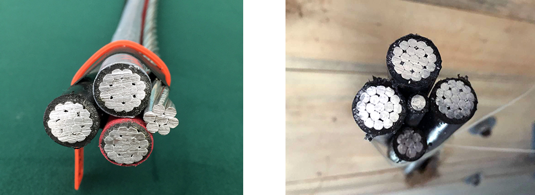 ABC電纜:即架空型捆綁電纜(Aerial Bunch cable),在國外不發(fā)達(dá)地區(qū)卻廣泛使用,國內(nèi)基本不用,包括1芯、2芯、3芯、4芯: Covered line wire 、 Duplex service drop 、 Triplex service drop、 Quadruplex Service Drop。包括全部帶絕緣的線芯、兩根絕緣線芯加一根裸導(dǎo)體的,三根絕緣線芯加一根裸導(dǎo)體的,純鋁的或者純鋁和鋁合金混著絞合的等等。