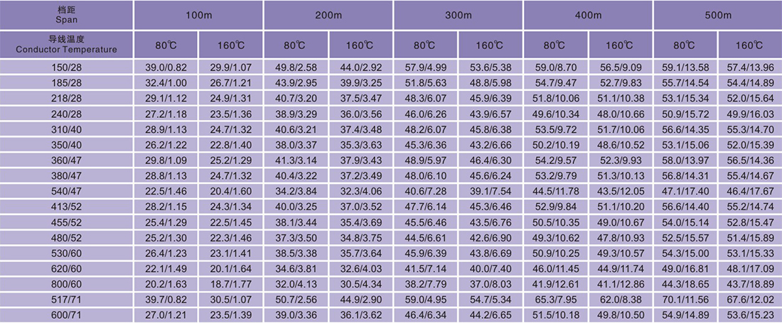 - 導線的線膨脹系數(shù)為鋼的1/10,在最低溫到最高溫的運行溫度范圍內弛度小