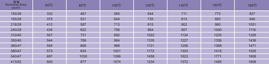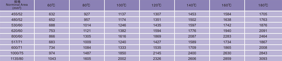 JRLX/T(ACCC/TW)碳纖維復合芯導線載流量表(A)