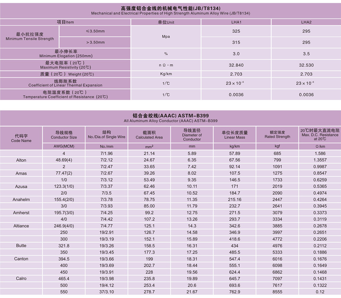 鋁合金線導電率58 5%IACS,抗拉強度230-250MPa。產(chǎn)品具有傳輸量大、弧垂性能好、損耗低、耐腐蝕、施工簡單等特點。