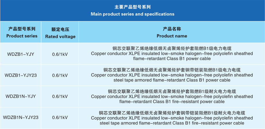 額定電壓0.6/1kV低煙無(wú)鹵B1級(jí)阻燃(耐火)電力電纜