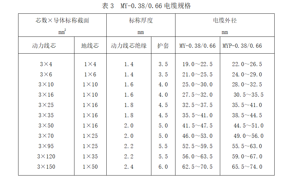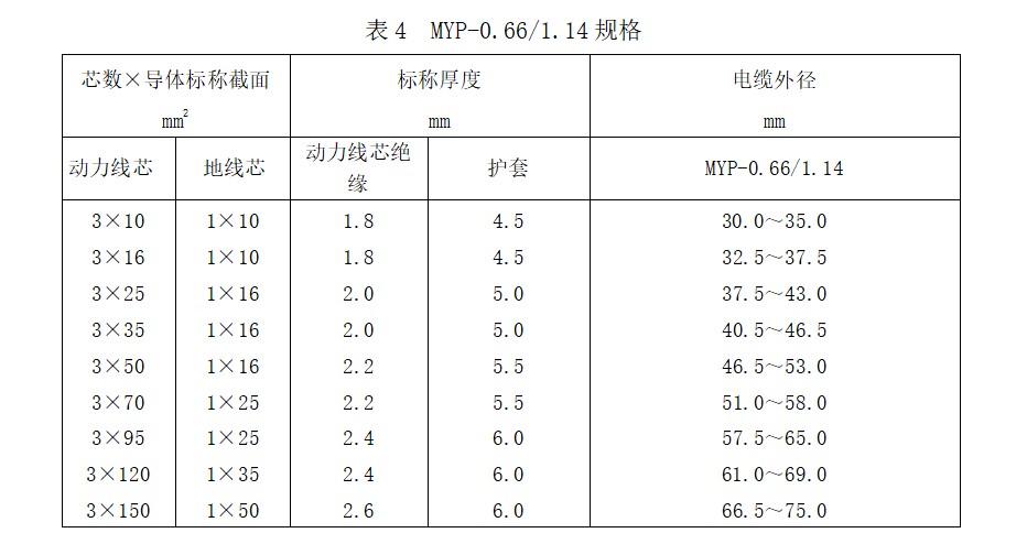 4.1.1 礦用移動橡套軟電纜(MY、MYP)具有以下性能: