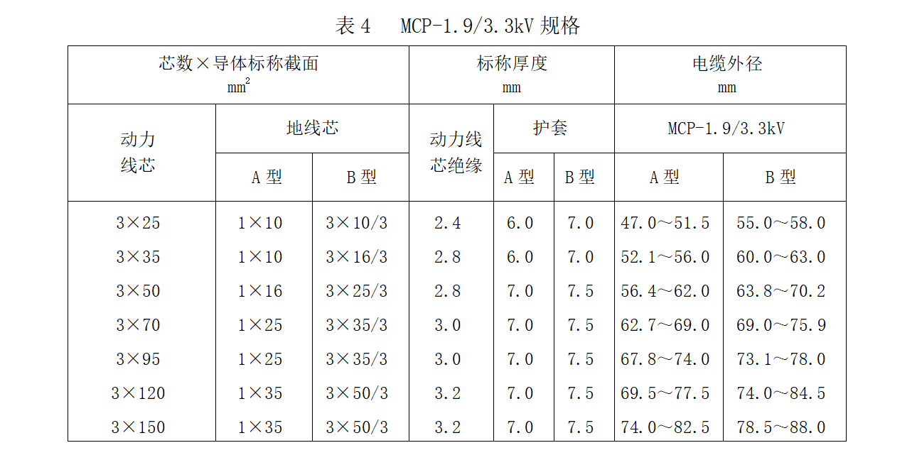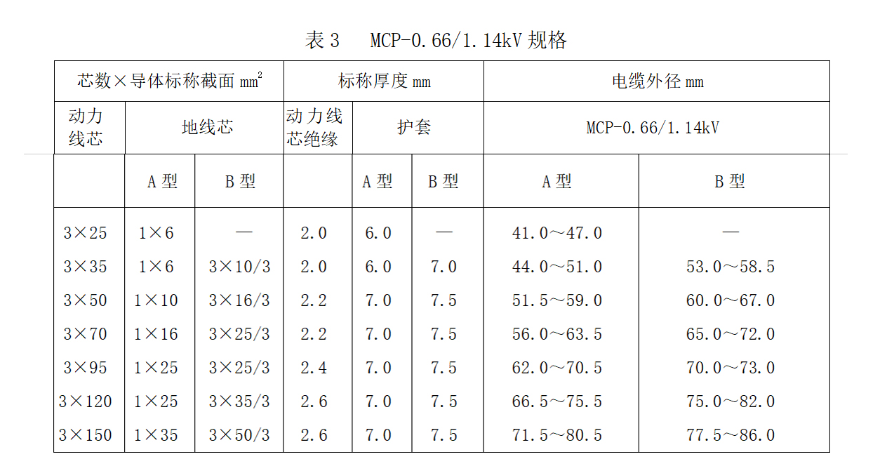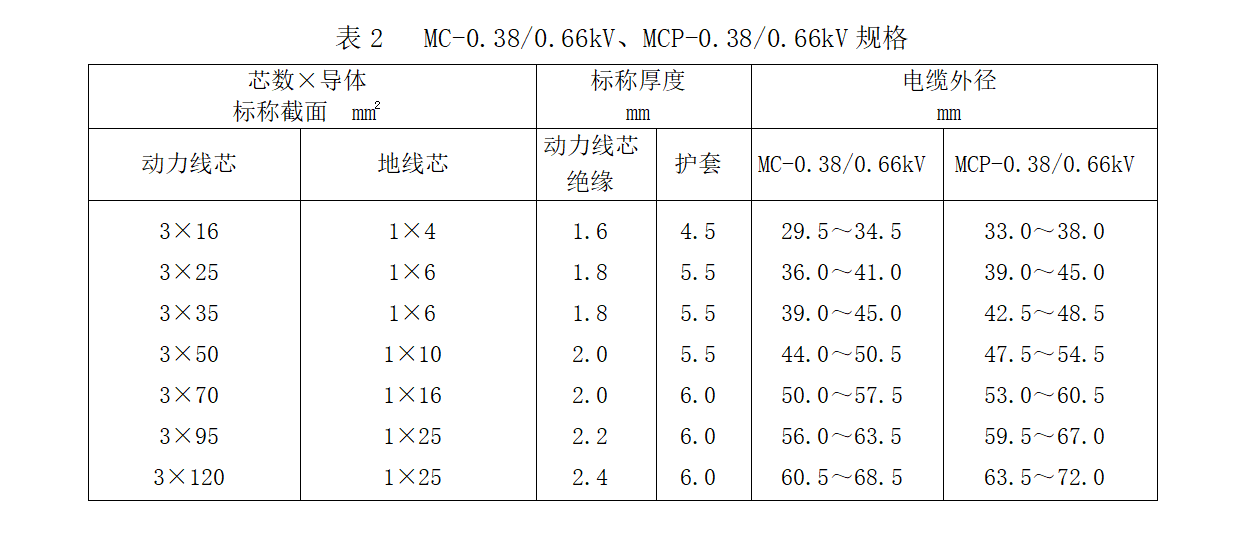 4.1.1 采煤機橡套軟電纜(MC、MCP)具有以下性能: