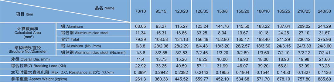 LBGLJ-70/10、LBGLJ-95/15、LBGLJ-120/20、LBGLJ-120/35、 LBGLJ-150/8、 LBGLJ-150/20、LBGLJ-185/10、LBGLJ-185/25、 LBGLJ-210/25、LBGLJ-240/30